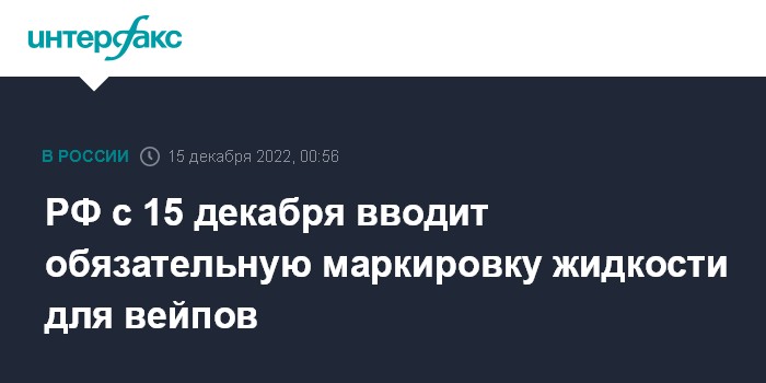 РФ с 15 декабря вводит обязательную маркировку жидкости для вейпов