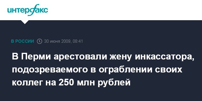 Москва. 30 июня. INTERFAX.RU - Ленинский районный суд Перми избрал меру пресечения для двух задержанных по делу об ограблении инкассаторской машины с 250 млн рублей.