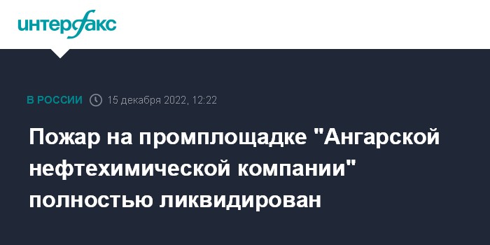 Москва. 15 декабря. INTERFAX.RU - Пожарные ликвидировали последствия пожара на промышленной площадке в Ангарске Иркутской области, сообщается в телеграм-канале главного управления МЧС по региону.
