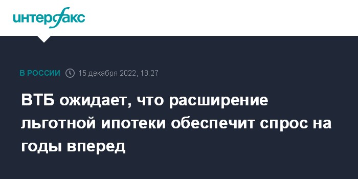 ВТБ ожидает, что расширение льготной ипотеки обеспечит спрос на годы вперед