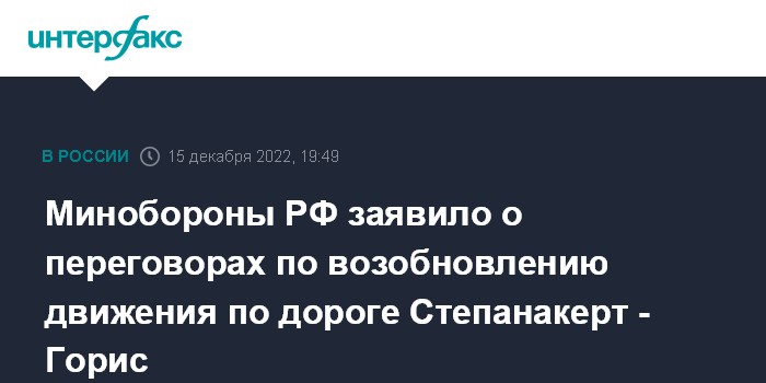 Минобороны РФ заявило о переговорах по возобновлению движения по дороге Степанакерт - Горис
