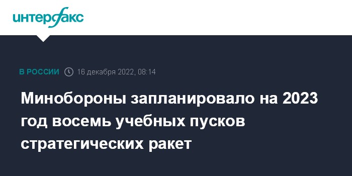 Минобороны запланировало на 2023 год восемь учебных пусков стратегических ракет