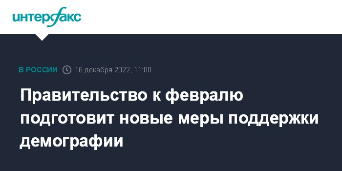 "Вчера на совете по стратегическому развитию и национальным проектам президент затрагивал этот вопрос и в соответствии с его более ранним поручением правительство ведет проект по разработке дополнительных мер и оценке эффективности уже действующих мер по поддержке демографии. И предполагается, что работа будет завершена к февралю, и мы представим соответствующие предложения", - сказала она.