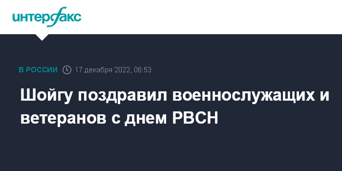Шойгу поздравил военнослужащих и ветеранов с днем РВСН