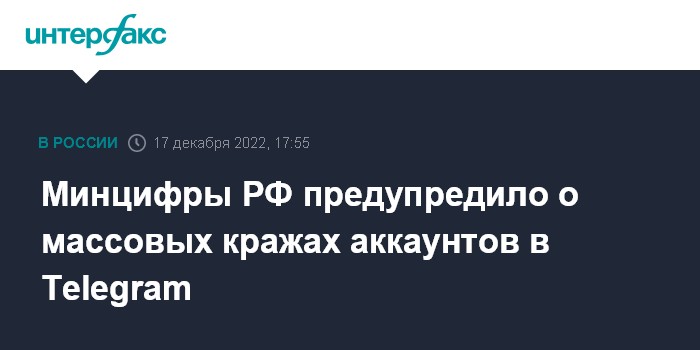 Москва. 17 декабря. INTERFAX.RU - Пользователи Telegram в субботу столкнулись с массовыми попытками кражи их аккаунтов, заявили в Минцифры РФ.