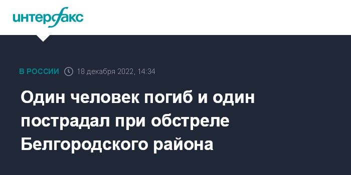 Москва. 18 декабря. INTERFAX.RU - Один человек погиб в результате обстрела Белгорода со стороны Украины.