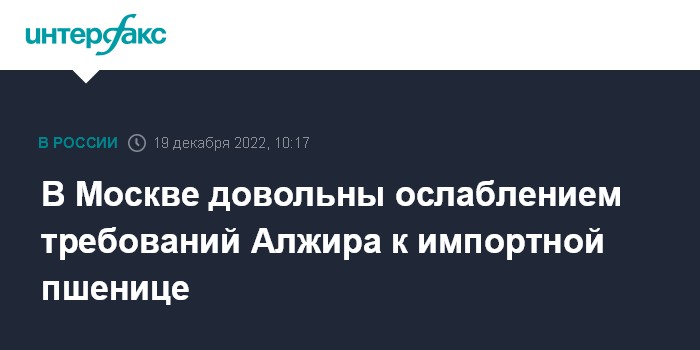 Россия начала регулярно поставлять пшеницу в Алжир в июне 2021 года. Это стало возможным после того, как Алжир в октябре 2020 года ослабил требования к российской пшенице, допустив при поставках зерно с повреждением клопом-черепашкой в объеме 0,5%. Ранее допускалось только 0,1%. До этого Алжир закупал пшеницу в основном во Франции, Германии, Аргентине.