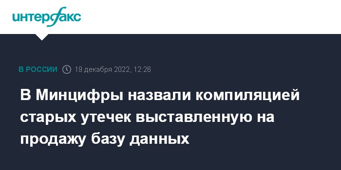 В Минцифры назвали компиляцией старых утечек выставленную на продажу базу данных