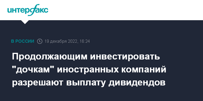 Продолжающим инвестировать "дочкам" иностранных компаний разрешают выплату дивидендов