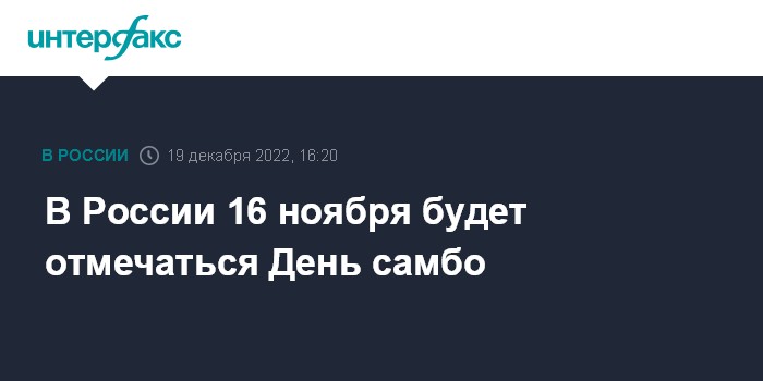 "В целях популяризации и развития самбо постановляю: установить День самбо и отмечать его 16 ноября", - говорится в указе президента РФ, опубликованном на официальном интернет-портале правовой информации.