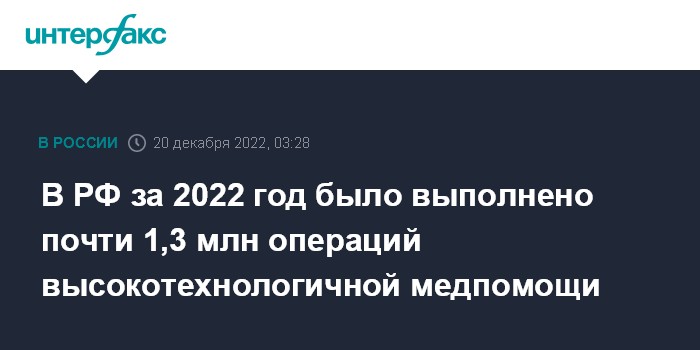 В РФ за 2022 год было выполнено почти 1,3 млн операций высокотехнологичной медпомощи