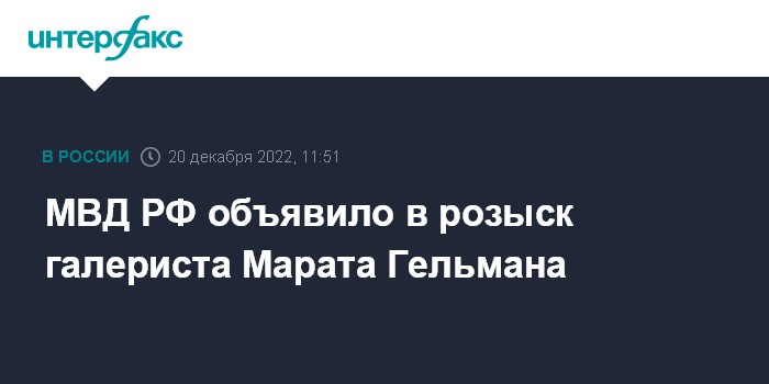 Москва. 20 декабря. INTERFAX.RU - Признанный в РФ СМИ-иноагентом галерист Марат Гельман объявлен в розыск.
