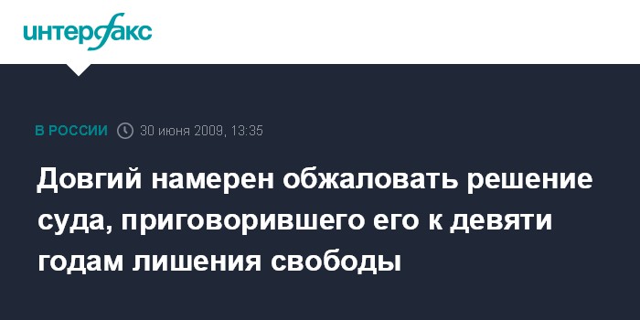 "Да, конечно", - ответил Довгий на вопрос "Интерфакса", будет ли он обжаловать вынесенный во вторник приговор.