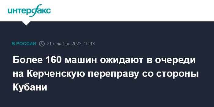 "На перехватывающей парковке в поселке Ильич утром 21 декабря ждут очереди на переправу 164 автомобиля, в том числе грузовые. Водителям выдают пропуска для погрузки на паромы", - говорится в сообщении.