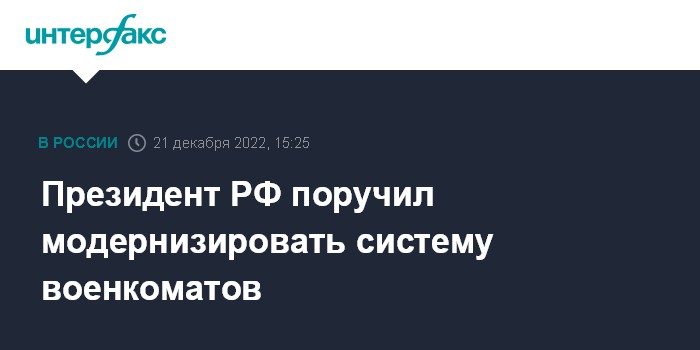 Москва. 21 декабря. INTERFAX.RU - Система военных комиссариатов нуждается в модернизации, заявил президент РФ Владимир Путин.