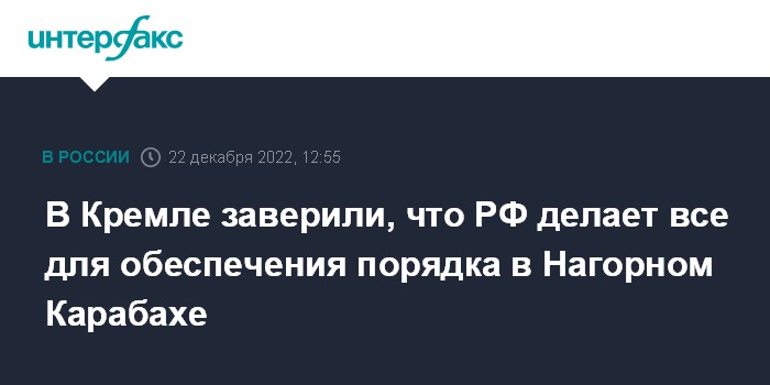 В Кремле заверили, что РФ делает все для обеспечения порядка в Нагорном Карабахе