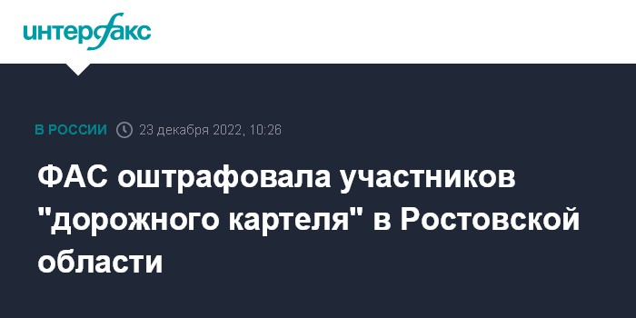 Москва. 23 декабря. INTERFAX.RU - Федеральная антимонопольная служба оштрафовала ГУП РО "Ростовавтодор" и ООО "Строитель" на 228,791 млн рублей за заключение и реализацию антиконкурентного соглашения, сообщает пресс-служба ведомства.