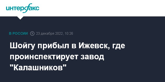 Шойгу прибыл в Ижевск, где проинспектирует завод "Калашников"