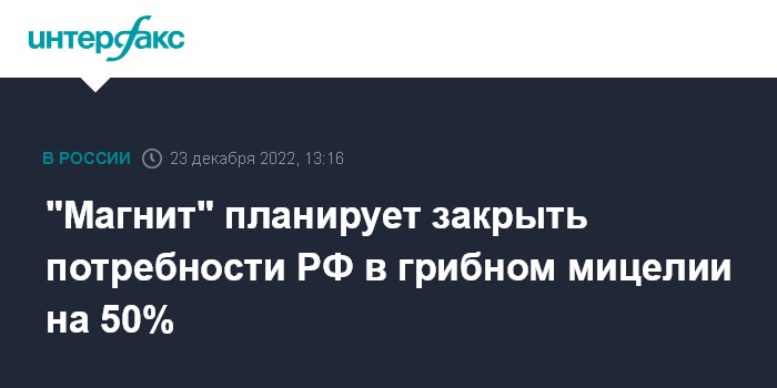 "Магнит" планирует закрыть потребности РФ в грибном мицелии на 50%