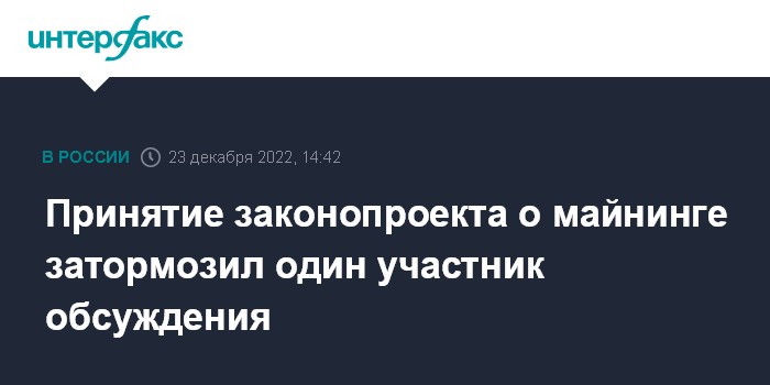 Москва. 23 декабря. INTERFAX.RU - Законопроект о легализации майнинга в России не был принят в 2022 году, так как у одного из участников обсуждения возникли подозрения, что каналы продажи майнерами криптовалюты могут использоваться для незаконного вывода средств за рубеж, прежде всего иностранными компаниями.