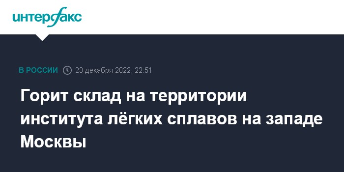 Горит склад на территории института лёгких сплавов на западе Москвы