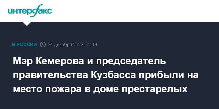 Москва. 24 декабря. INTERFAX.RU - Представители властей Кемеровской области и регионального центра прибыли к месту возгорания дома престарелых с 13 погибшими, передает корреспондент "Интерфакса" с места пожара.