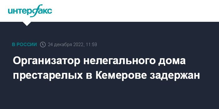 Москва. 24 декабря. INTERFAX.RU - Организатор нелегального дома престарелых в Кемерове, где в результате пожара погибли более 20 человек, задержан после допроса, ему предъявлено обвинение, сообщает в субботу телеграм-канал Следственного комитета РФ.