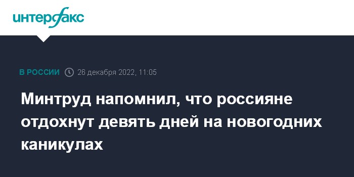 Минтруд напомнил, что россияне отдохнут девять дней на новогодних каникулах