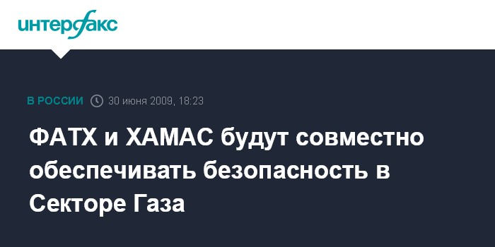 Иерусалим. 30 июня. INTERFAX.RU - Представители палестинских движений ФАТХ и ХАМАС договорились о создании совместного органа для обеспечения безопасности в Секторе Газа, сообщает во вторник израильская газета Haaretz со ссылкой на заявление высокопоставленного представителя ФАТХ Аззама аль-Ахмеда.
