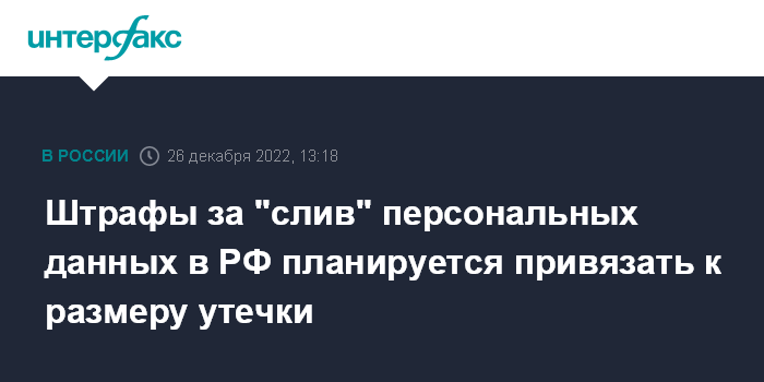Штрафы за "слив" персональных данных в РФ планируется привязать к размеру утечки