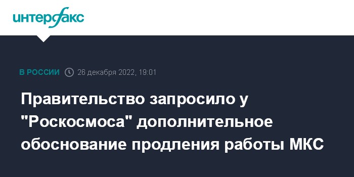 "Правительство попросило нас прислать дополнительно обосновывающие материалы, говорящие о технической возможности (продления), и попросило нас согласовать решение с другими министерствами", - сказал Крикалев журналистам в понедельник.
