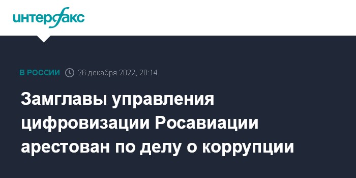 Замглавы управления цифровизации Росавиации арестован по делу о коррупции