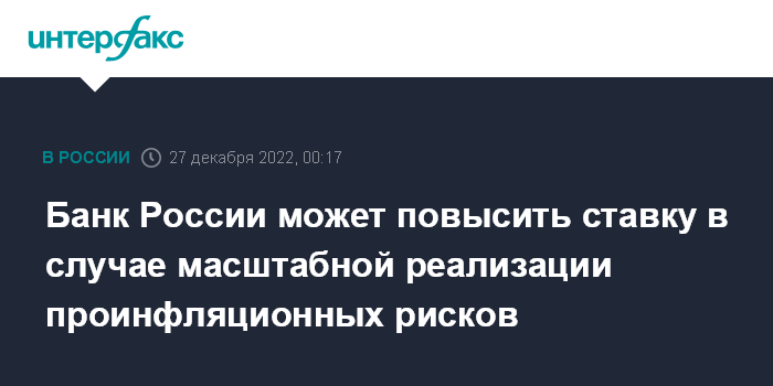 Банк России может повысить ставку в случае масштабной реализации проинфляционных рисков