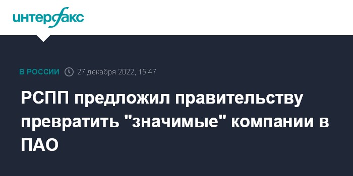 РСПП предложил правительству превратить "значимые" компании в ПАО