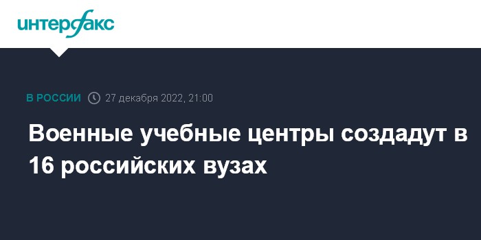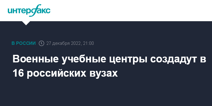 Москва. 27 декабря. INTERFAX.RU - Премьер-министр России Михаил Мишустин подписал распоряжение о создании 16 военных учебных центров при государственных университетах в регионах страны.