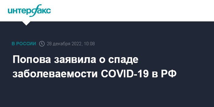 Москва. 28 декабря. INTERFAX.RU - В России вторую неделю подряд наблюдается снижение заболеваемости COVID-19, в целом ситуация по коронавирусу и гриппу является управляемой и не требует дополнительных мер, заявила глава Роспотребнадзора Анна Попова.