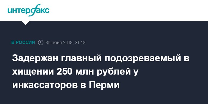 Задержан главный подозреваемый в хищении 250 млн рублей у инкассаторов в Перми