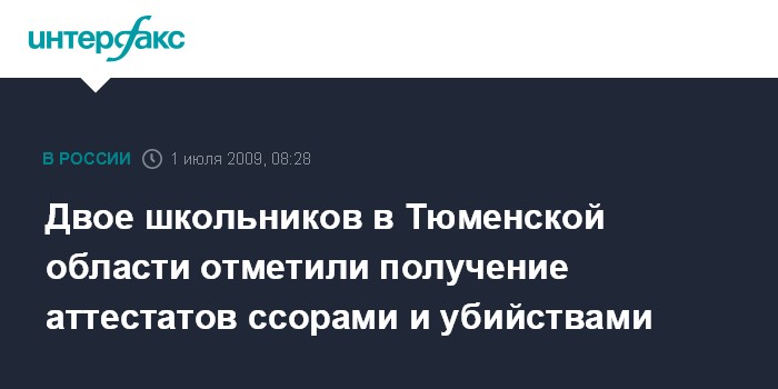 Двое школьников в Тюменской области отметили получение аттестатов ссорами и убийствами