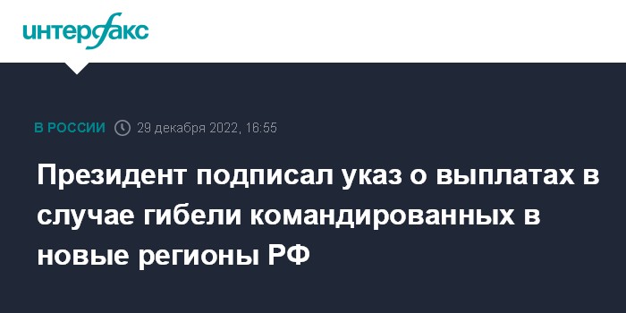 Президент подписал указ о выплатах в случае гибели командированных в новые регионы РФ