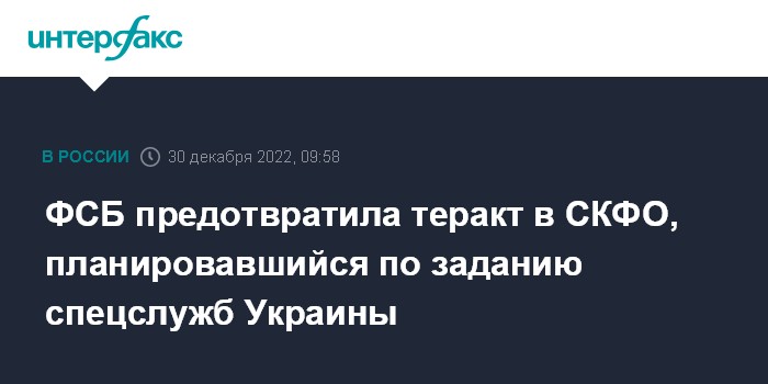 ФСБ предотвратила теракт в СКФО, планировавшийся по заданию спецслужб Украины