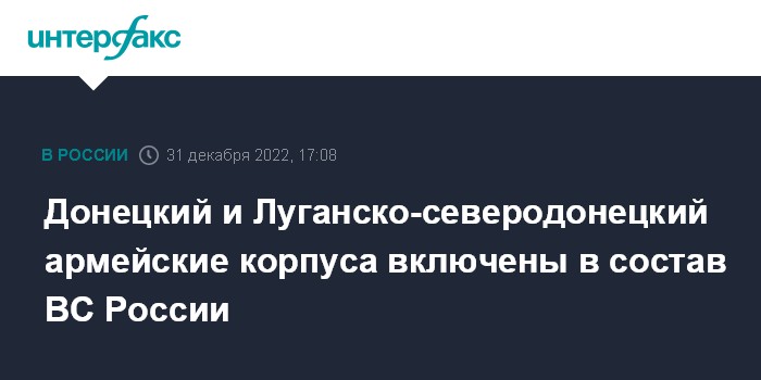 Донецкий и Луганско-северодонецкий армейские корпуса включены в состав ВС России