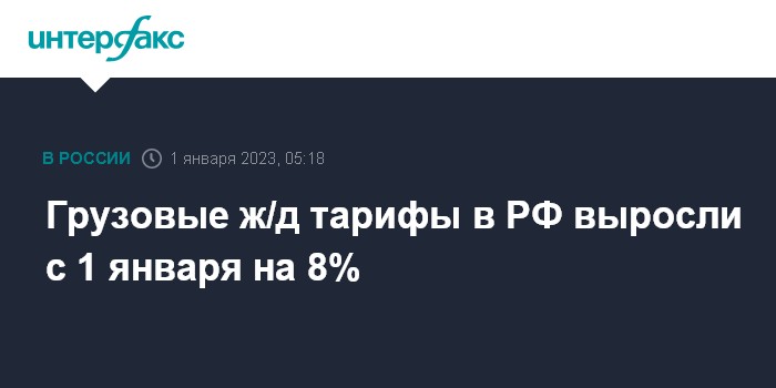 Москва. 1 января. INTERFAX.RU - Грузовые железнодорожные тарифы выросли в РФ с нового года на 8% к уровню 2021 г.