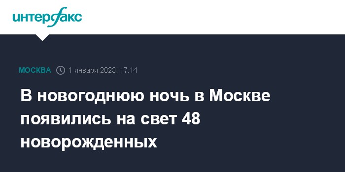 Москва. 1 января. INTERFAX.RU - В ночь с 31 декабря на 1 января в столице родились 48 детей, сообщается на официальном сайте мэра и правительства Москвы.