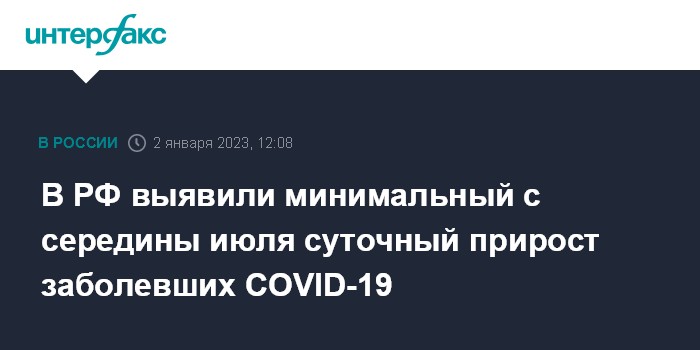 Москва. 2 января. INTERFAX.RU - Суточный прирост новых заболевших коронавирусной инфекцией в РФ составил 3 884 случая, что стало минимальным значением с середины июля прошлого года, следует из данных оперативного штаба, обнародованных в понедельник.
