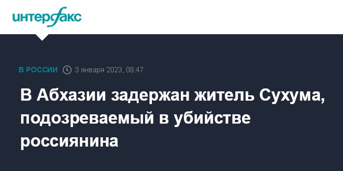 Москва. 3 января. INTERFAX.RU - Задержан житель Сухума Руслан Трапш ранее объявленный в розыск за убийство гражданина России, сообщает генпрокуратура Абхазии.