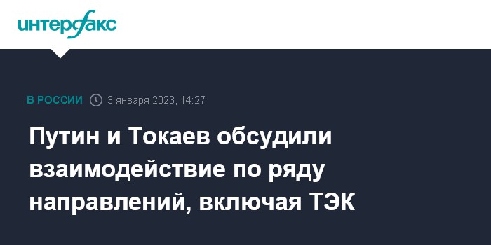 Путин и Токаев обсудили взаимодействие по ряду направлений, включая ТЭК