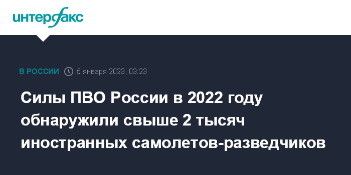 Силы ПВО России в 2022 году обнаружили свыше 2 тысяч иностранных самолетов-разведчиков