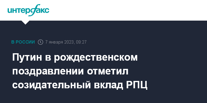 Москва. 7 января. INTERFAX.RU - Президент РФ Владимир Путин поздравил россиян с Рождеством Христовым, отметил созидательный вклад РПЦ в единение общества и укрепление института семьи.