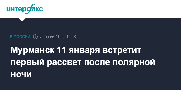 Москва. 7 января. INTERFAX.RU - Полярная ночь на широте Мурманска завершится 10 января и на следующий день город встретит первый рассвет, сообщили "Интерфаксу" в Мурманском гидрометцентре.