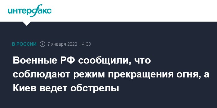 "Объединенная группировка российских войск (сил) в районе проведения специальной военной операции с 12-ти часов московского времени 6 января соблюдает режим прекращения огня вдоль всей линии боевого соприкосновения. Вместе с тем, киевским режимом в течение прошедших суток продолжались артиллерийские обстрелы населенных пунктов и российских позиций", - сказал Конашенков.